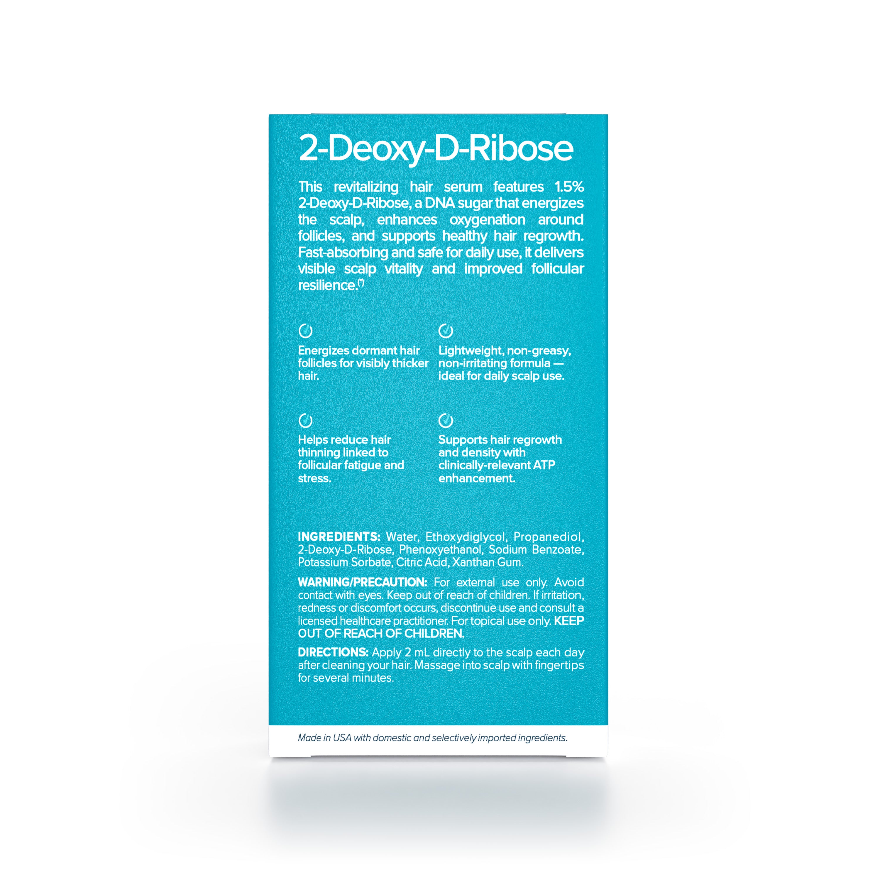 - Ondersteunt de Vitaliteit van de Hoofdhuid: Bevat 1,5% 2dDR, een door onderzoek geïnspireerde DNA-suiker die bekend staat om het ondersteunen van ATP-niveaus en het bevorderen van een verfriste, gezondere hoofdhuidoppervlakte.